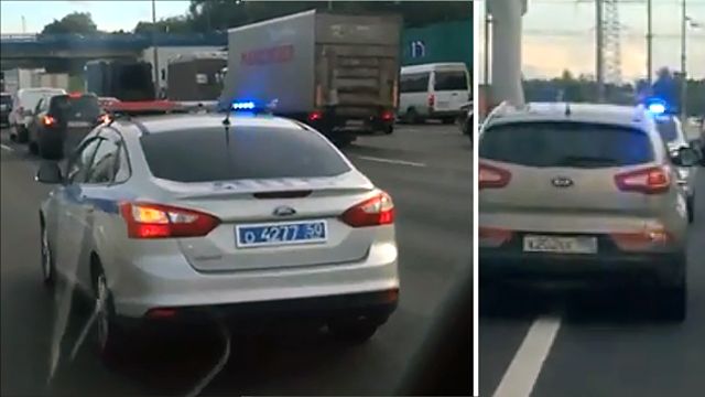 Громкий скандал в Москве: работники скорой обвинили подмосковных полицейских в использовании служебных полномочий в личных целях. Автомобиль ДПС сопровождал в пробке кроссовер, в котором, по словам автора видео, едут приятели инспекторов.